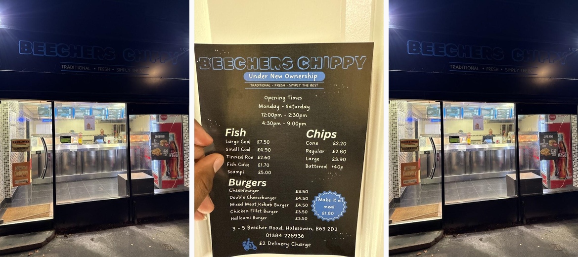 Discover Beecher's Chippy in Halesowen, your go-to fast food restaurant for delicious fish and chips, chicken kebabs, and hearty portions. Enjoy a casual atmosphere perfect for lunch with a kids' menu and takeaway options. Experience friendly service at affordable prices (£1–10) and free street parking. Join us for a quick bite that will leave you wanting more!